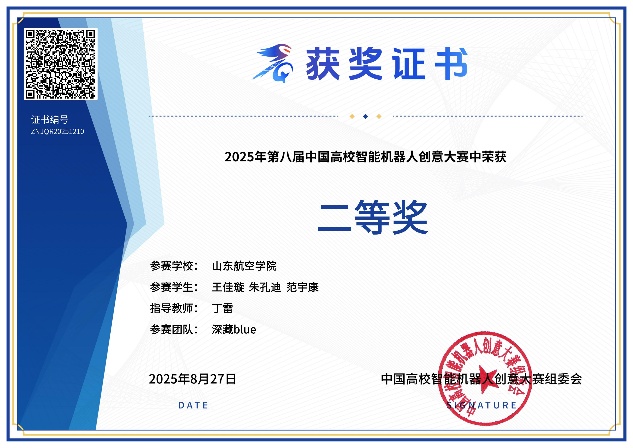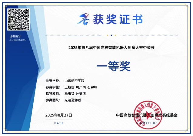 中国高校智能机器人创意大赛是国内高校机器人领域具有较高影响力与广泛参与度的权威赛事之一,旨在推动机器人技术与人工智能的创新应用,促进跨学科融合与人才培养。经过层层选拔,qy88vip千赢国际官网版由陈泽逸、王朝磊组成的代表队凭借出色的创新设计与技术实现,在“无人机格斗”赛道中斩获全国一等奖和三等奖;另有于双宁团队、王佳璇团队在“创意类机器人”赛道获二等奖。