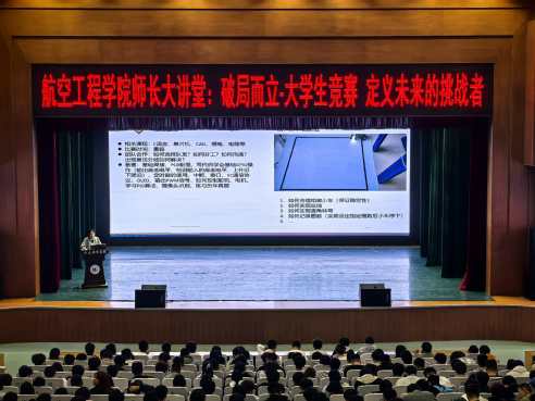 讲座伊始,高金海博士从竞赛价值、竞赛类别和备赛选择上作分享。他强调了竞赛的核心价值,提醒同学们在学好专业课程的基础上,夯实专业技能,结合航空特色,选择并积极参与所学专业相关的学科竞赛,培养创新意识,提高科创本领。围绕航空领域的三类热门赛事,高金海梳理了关键时间节点与备赛重点,为同学们搭建了清晰的“竞赛知识图谱”,他建议根据个人优势和专业方向选赛备赛,注重团队互补与资源共用,谋求学业导师帮助。